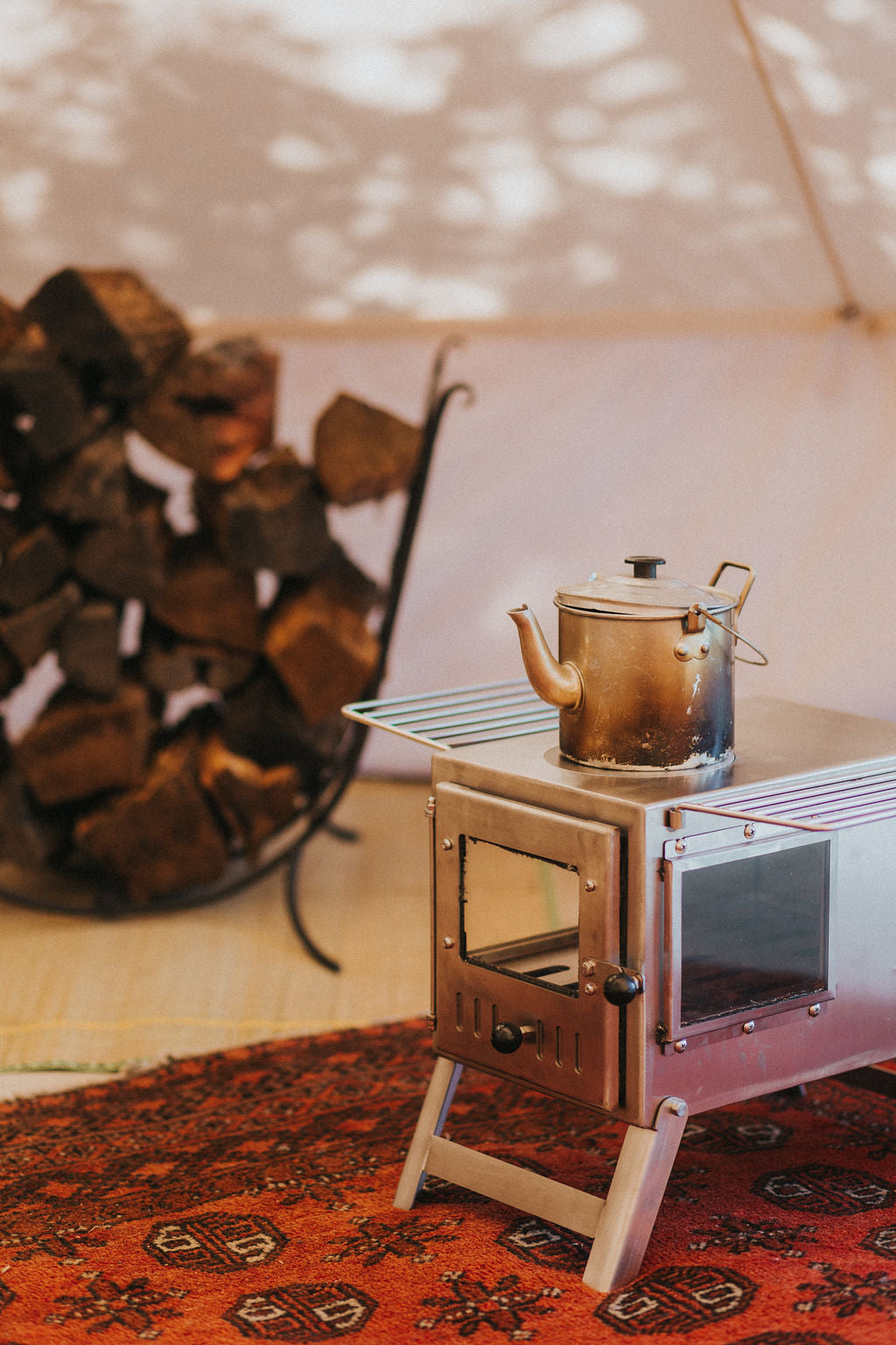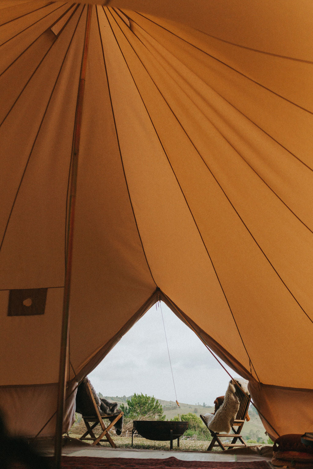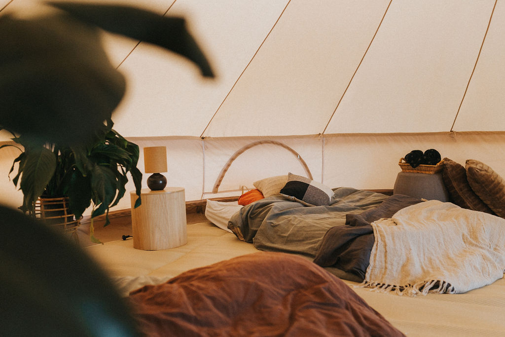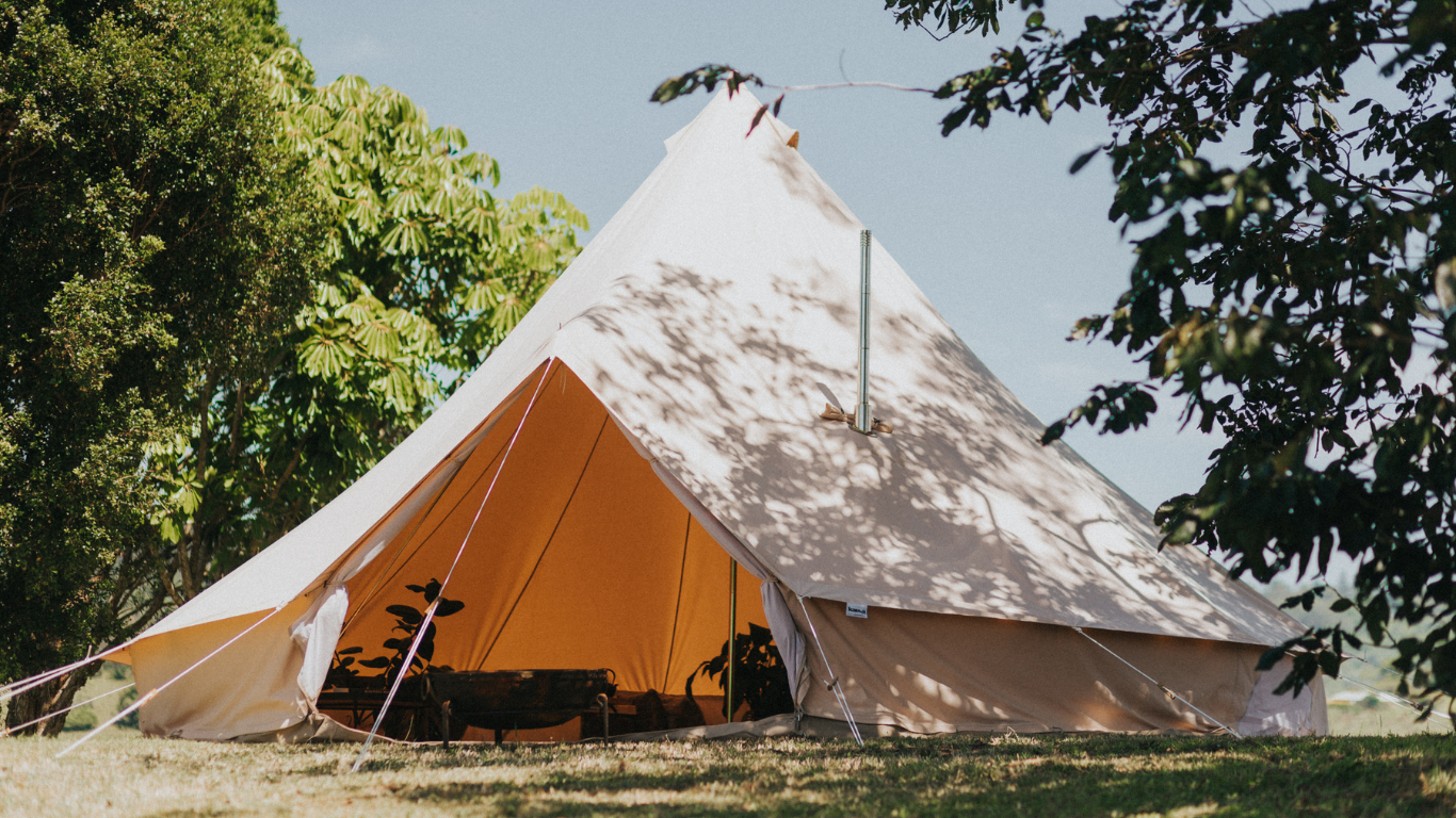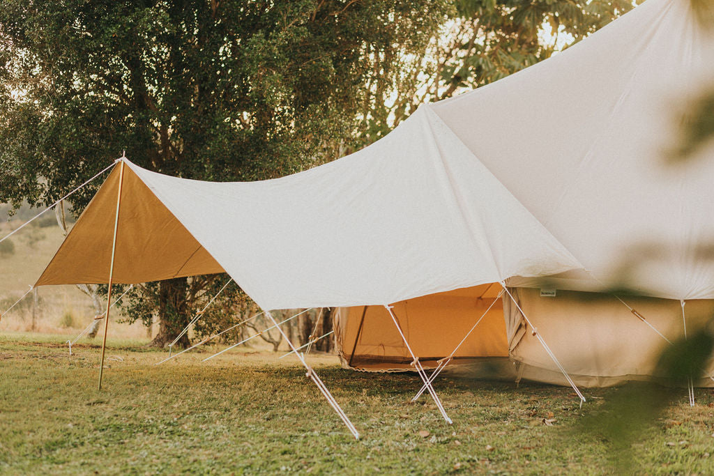 Our bell tents are made with 100% canvas, consciously designed to take you off-grid for many years to come. Canvas is hardwearing, mould resistant, and makes for a light and airy shelter. The fabric is treated to protect against UV rays, rain, and is fire retardant - Karma Canvas bell tents are made to withstand all seasons, so you and your family can safely getaway year-round.