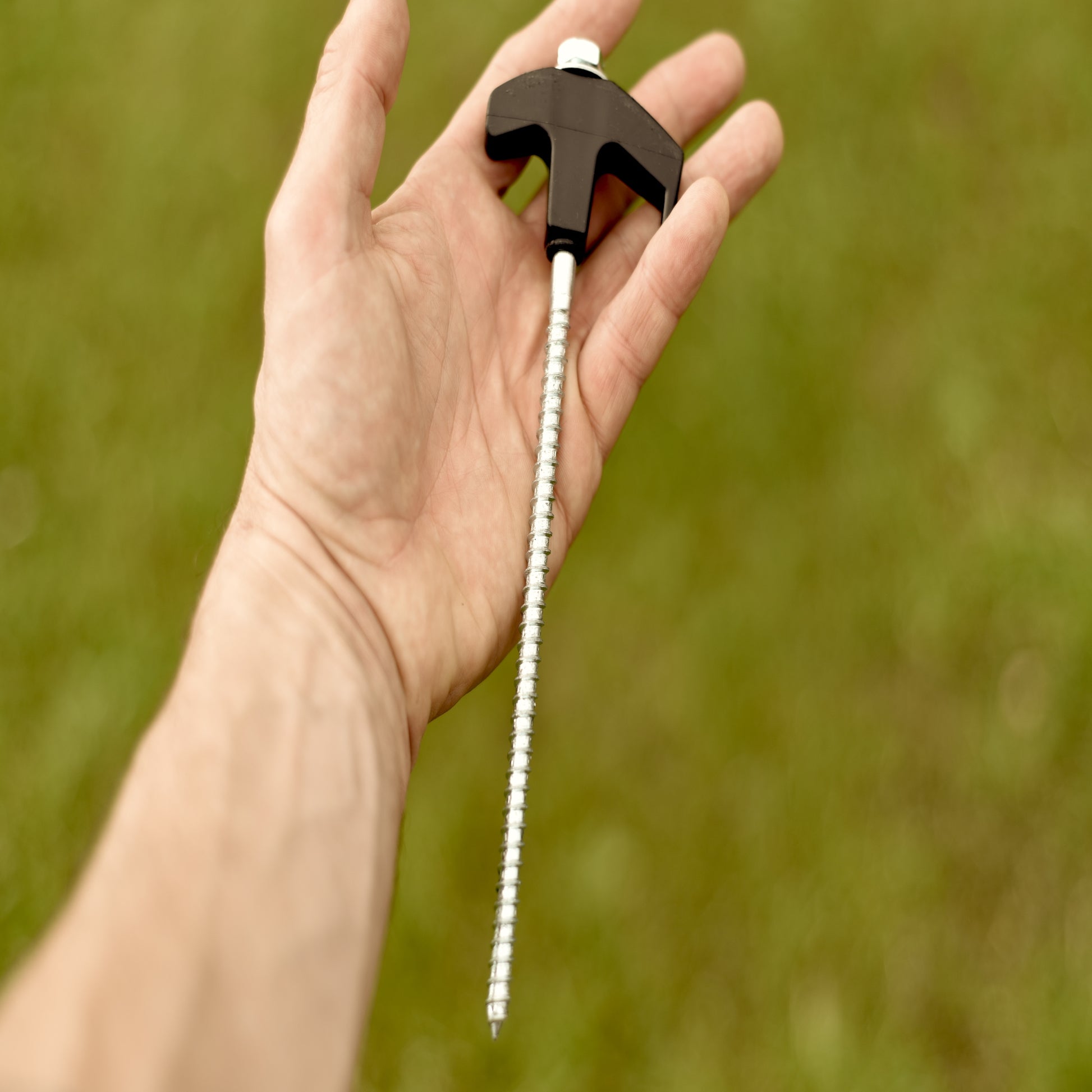 Crafted from tough galvanised steel with a hardened plastic head, EarthAnchor is built to endure the elements and grip where other pegs can’t. Its screw-in design ensures a deep, locked-in hold, reducing the risk of slippage or loosening over time.