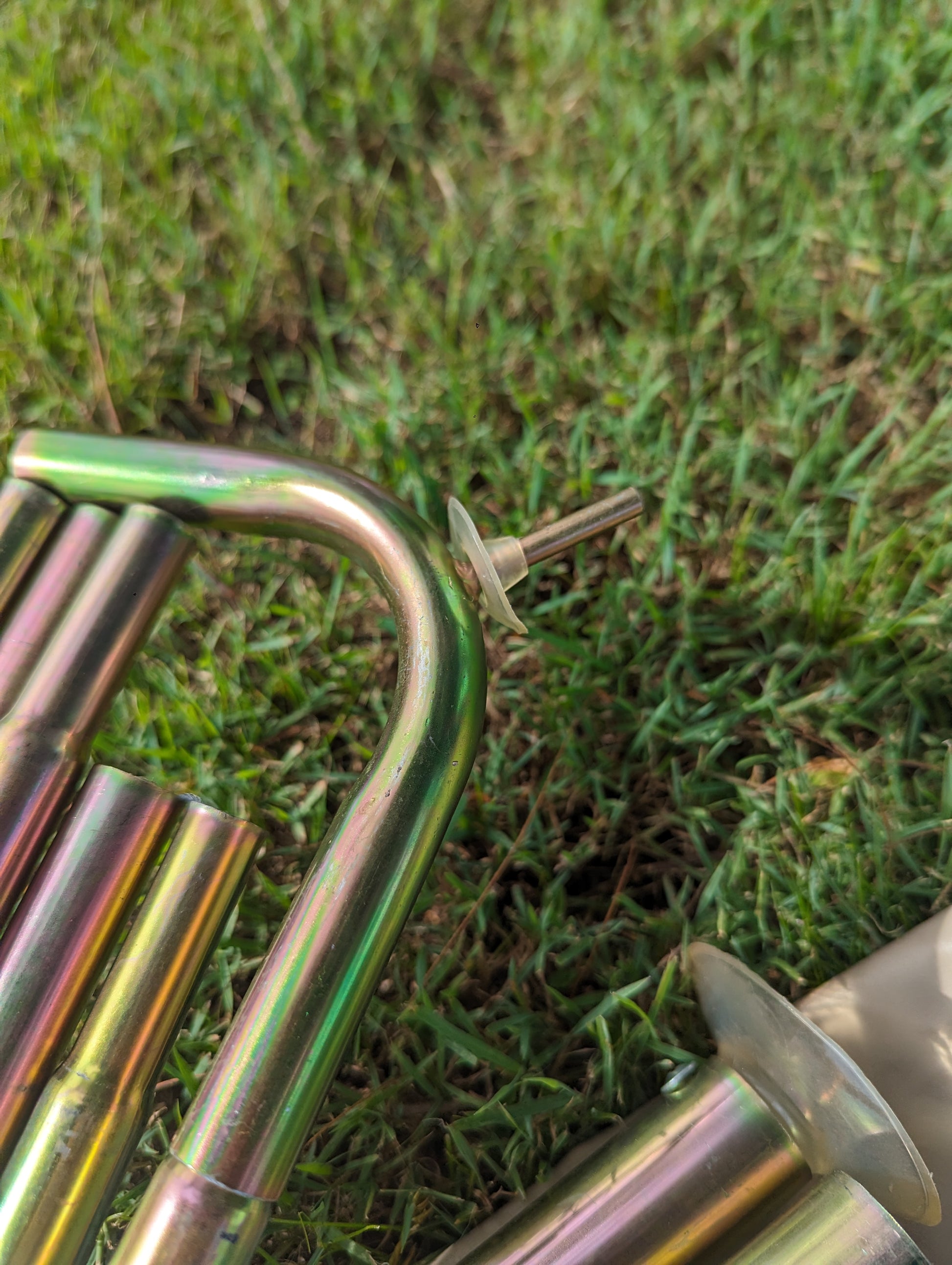 Centre pole stoppers are secured with screws to prevent them coming loose or getting lost