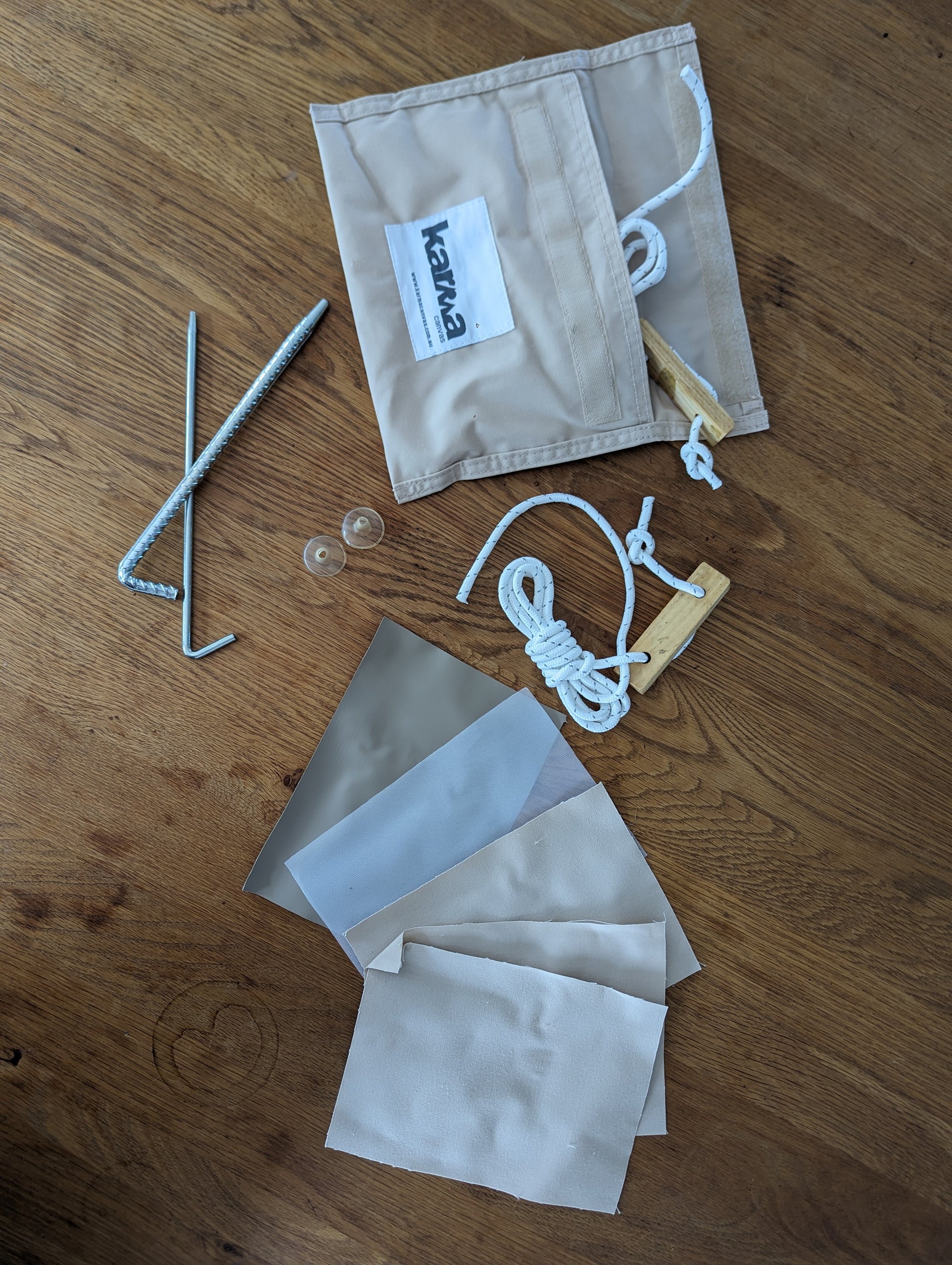 Designed for quick fixes and replacements, this handy spares and repair kit includes the essentials to help you maintain your Karma Canvas bell tent in the field. Whether it’s a torn patch, a missing peg, or a broken guy rope, this kit ensures you’re never caught unprepared.